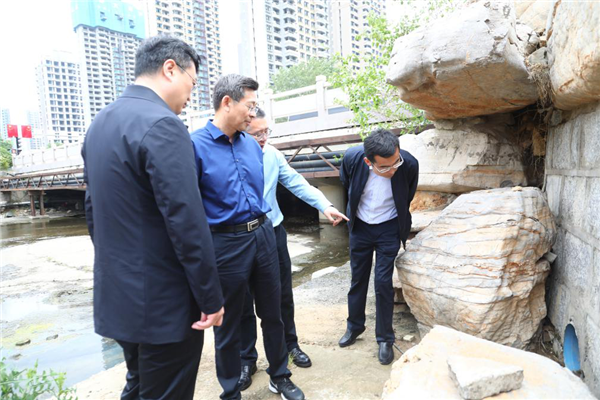 在望岛河,督察组仔细察看沿河排水口,指出要做好雨污分流、河流截污、河道清淤等工作,细致排查污水管道漏水情况,及时修补,并做好后期维修,不断改善水生态环境质量。