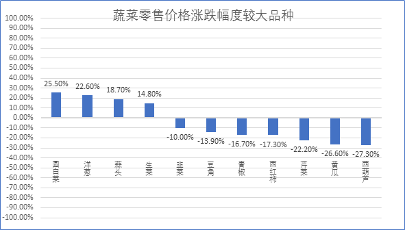 一、蔬菜市场价格下行 上周,威海市生活必需品市场监测系统重点监测的30种蔬菜“5涨18跌7平”,蔬菜零售均价环比上周下跌5.8%,价格下行。其中,圆白菜、洋葱、蒜头、生菜4个品种涨幅超过10%; 西葫芦、黄瓜、芹菜、西红柿、青椒、豆角、韭菜7个品种跌幅超过10%;菜花、土豆、莴笋、山药、冬瓜、豆芽、大葱7个品种蔬菜价格环比基本持平。上周,随着天气逐步转暖,蔬菜长势趋好,再加上节后效应,蔬菜整体价格下行,预计近期蔬菜价格依然会保持下行态势。