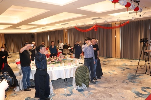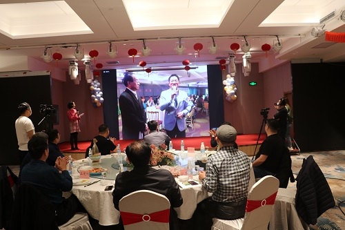 活动现场,在山东省台属联谊会副会长、威海市台胞台属联谊会会长李杰和台湾基隆市山东同乡会理事长刘建国的带领下,两地同胞共同举杯,为对岸的亲人送上新春祝福。