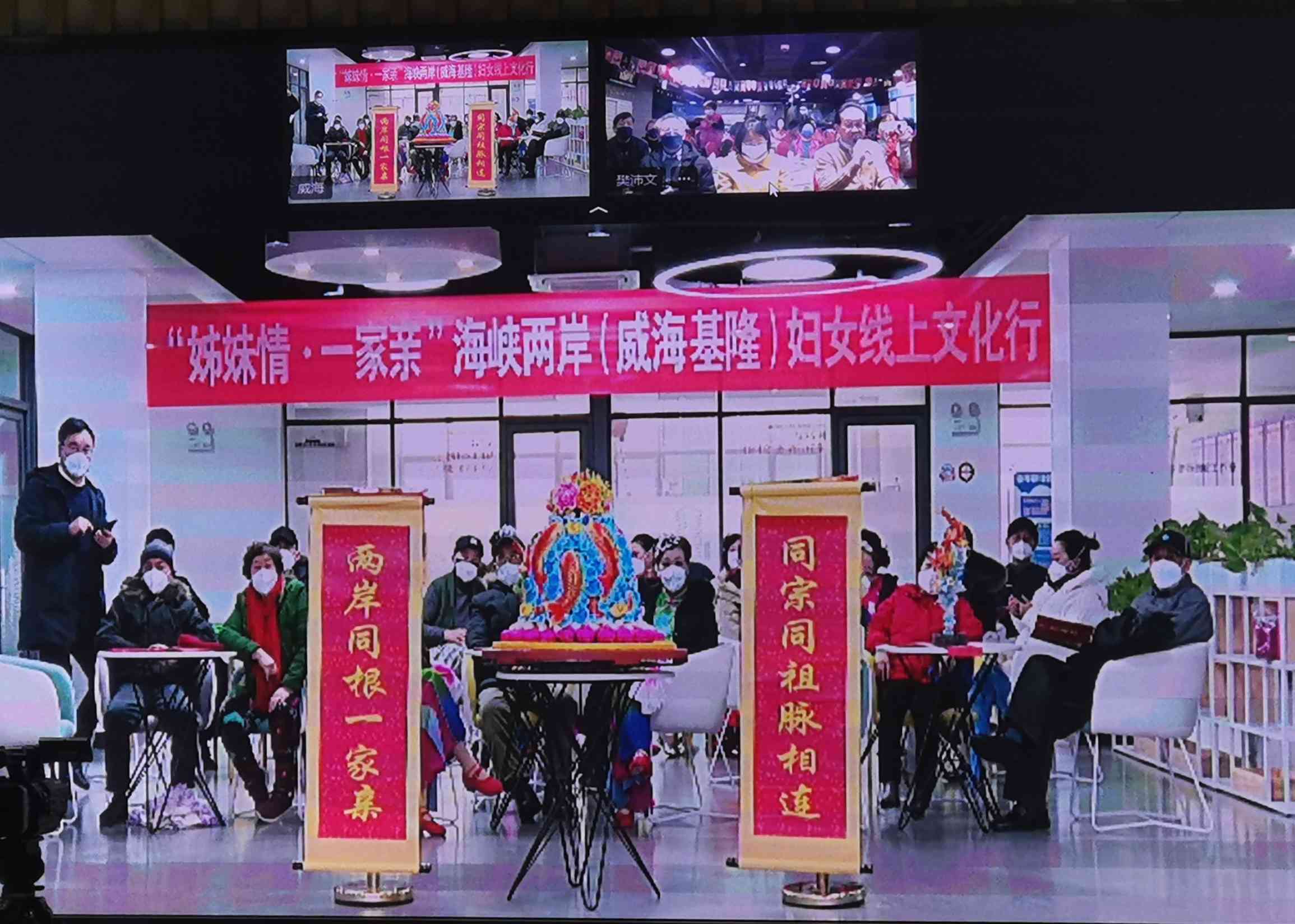 12月17日,威海市环翠区北门外社区与基隆市港都姊妹协会、基隆市山东同乡会同步举办“姊妹情·一家亲”海峡两岸(威海基隆)妇女线上文化行活动。来自威海、基隆两地社区居民、妇女同胞及部分山东籍、威海籍同乡近百人参与了活动。活动当天,威海现场雪落纷纷、翩然而下,北门外社区位于环翠区最繁华的商业老区,依旧同平日一般呈现一番熙熙攘攘的景象,热热闹闹的人间烟火气将寒意尽数消减,活动也在两岸妇女同胞热切的期盼中拉开帷幕。
